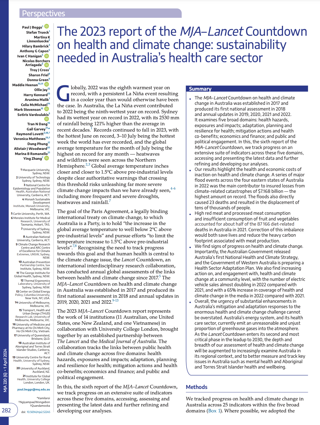 The 2023 report of the MJA–Lancet Countdown on health and climate change: sustainability needed in Australia's health care sector
