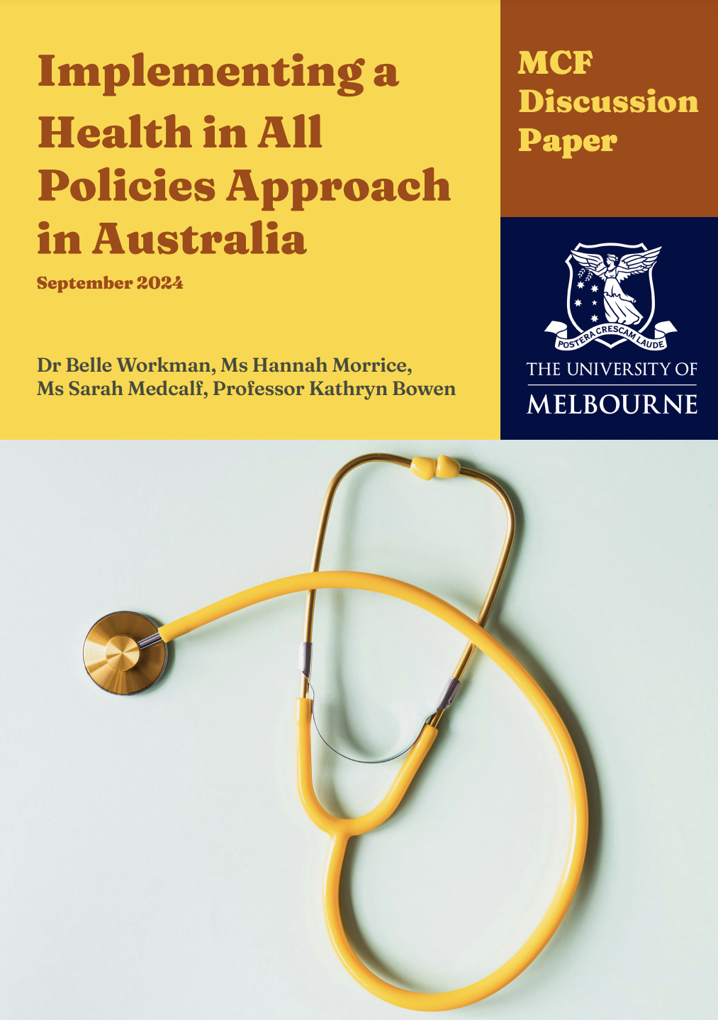 Melbourne Climate Futures have published a discussion paper “Implementing a Health in All Policies Approach in Australia”. In this paper, authors provide policymakers with a background to this approach and recommendations for how we can remove barriers to its application